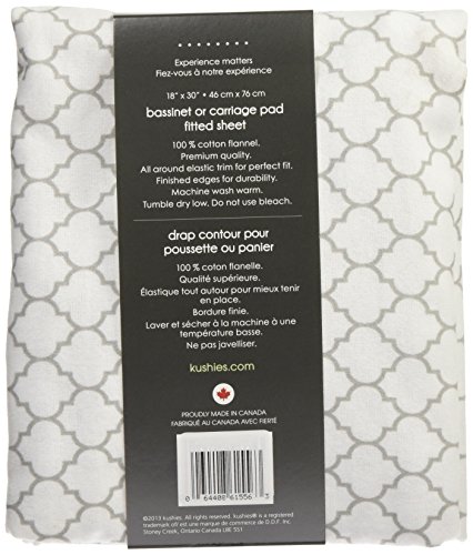 - Kushies Baby Fitted Bassinet Sheet, White/Grey Ornament