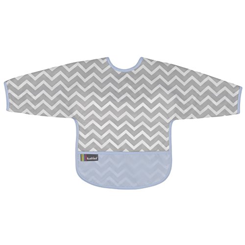 クーシーズ/Kushies 長袖ウォータープルーフ クリーンビブ (M, ブルーシェブロン) お食事ビブ スタイ エプロン [KushiesCleanbib] (M, ブルーシェブロン)