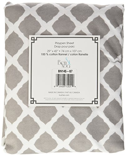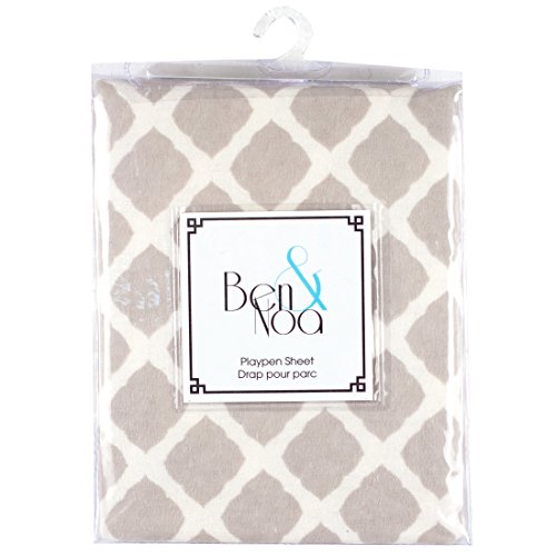 Ben & Noa Fitted Play Pen Sheet Flannel, Grey Lattice