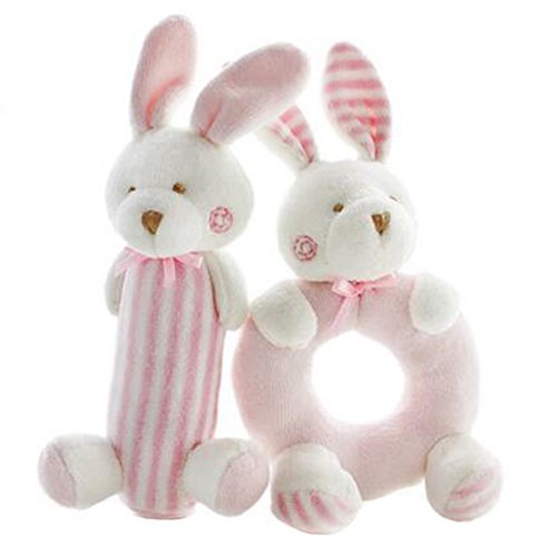 2pcs Baby Plush Soft Toy Baby Rattles Ring Rattle Hand Grasp Rattle、ピンクウサギ