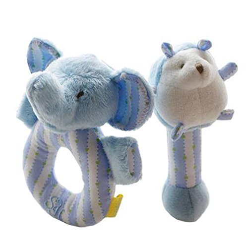 2pcs Baby Plush Soft Toy Baby Rattles Ring Rattle Hand Grasp Rattle、ブルー