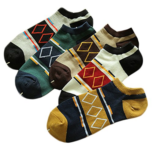 5ペアのコットン通気性吸収性ソックスメンズソックスダイヤモンド