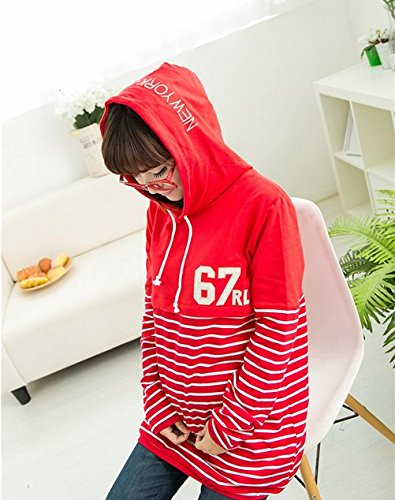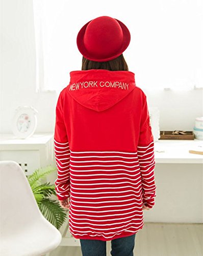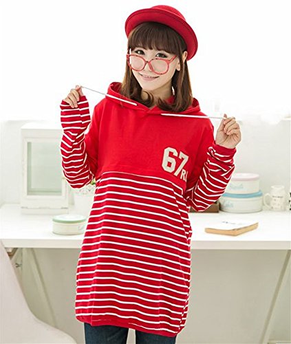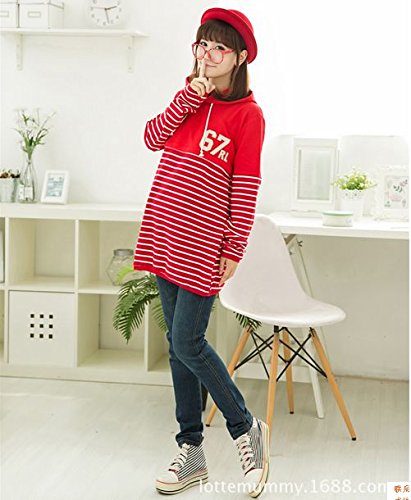 L’oiseau bleu (ロワゾブルー) かわいい マタニティ ウェア 授乳口 付き ボーダー パーカー トップス チュニック 長袖 カジュアル 部屋着 (レッド)