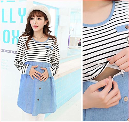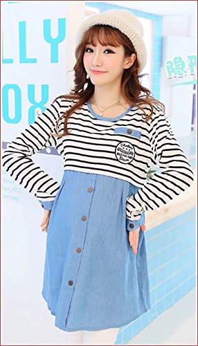 かわいい マタニティウェア 授乳口 付き 授乳服 ボーダー チュニック 長袖 部屋着 春 夏 秋
