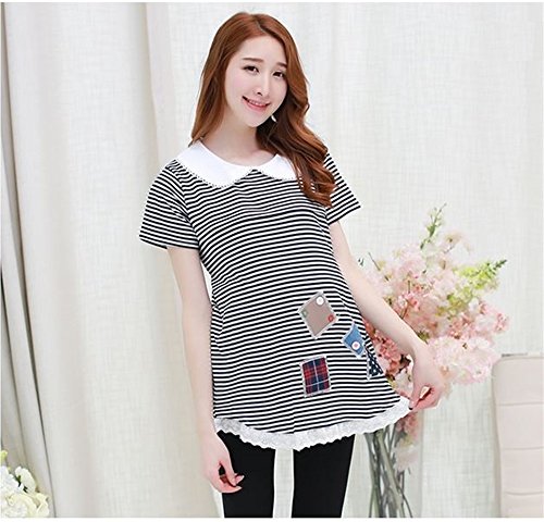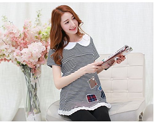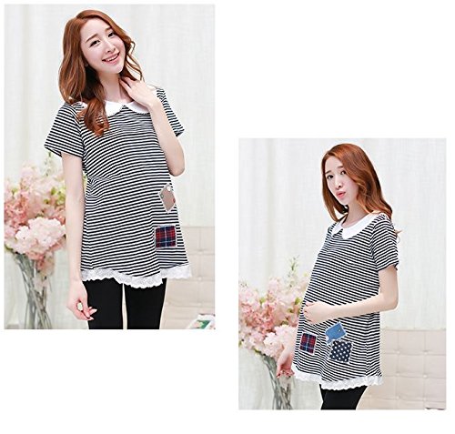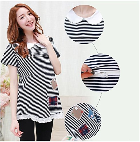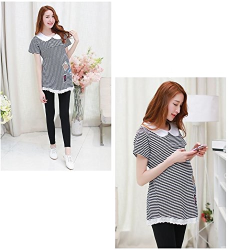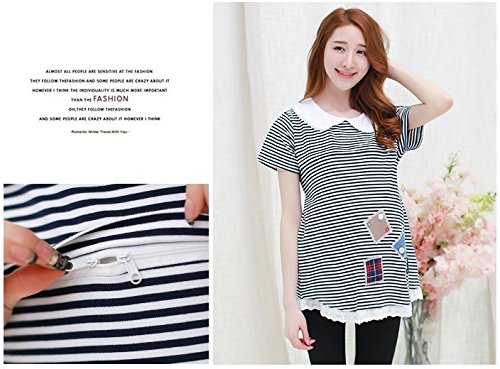 - 授乳服には見えない若々しいボーダー柄です。パッチ風のアップリケも可愛いですね。