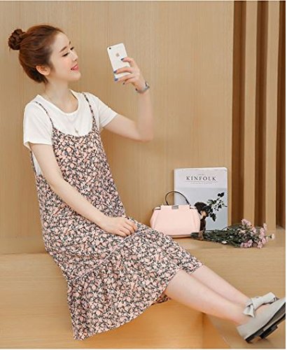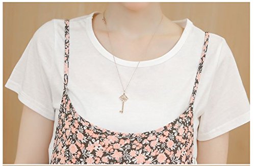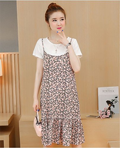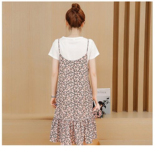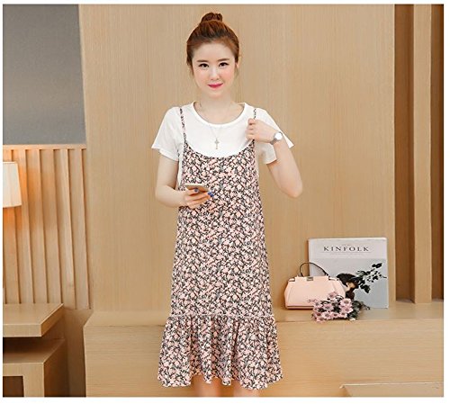 シック な 花柄 キャミワンピース 授乳口 付き Tシャツ マタニティウェア 授乳服 半袖 部屋着 春 夏 秋 (L)