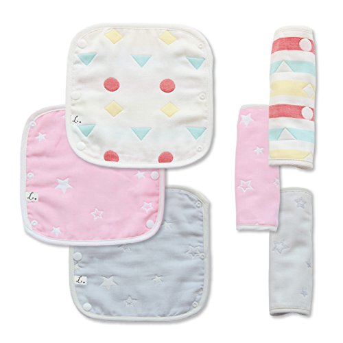 L. 抱っこ紐カバー シンプルで可愛いデザインのよだれカバー サッキングパッド 綿100% 6重ガーゼ 6枚入り(3ペア)