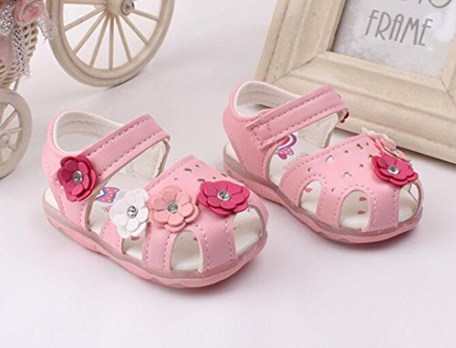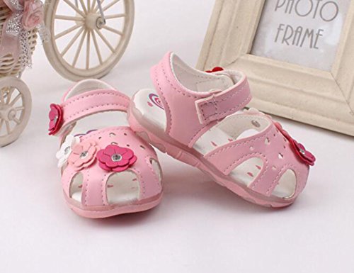LAZA 可愛い ベビー 女の子 サンダル つま先 保護 お花 おしゃれ きれいめ 子供 各サイズ 夏 水泳 海 女児 (内寸13cm)