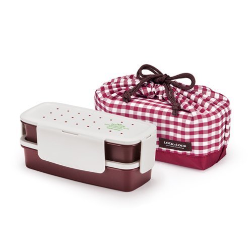 Brand : lock & Lock;Size : 95x215x88mm / Colr : Wine;Airtight 2 Tier with 2 Containers + Bag (Small Version);Lunch Box for Your Picnic & Outdoor Activity;Lunch Box