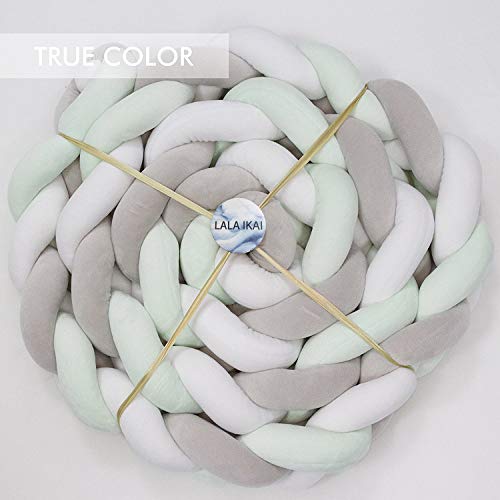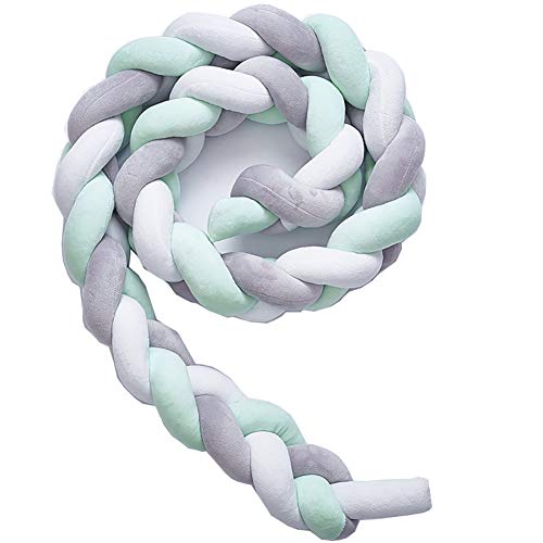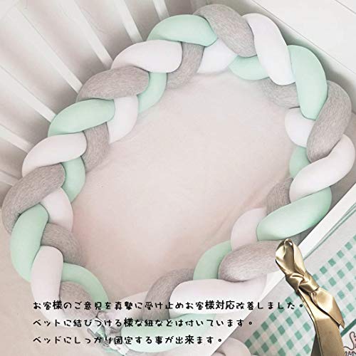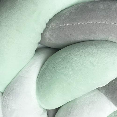ベビーベッドガード サイドガード 抱き枕 ノットクッション 赤ちゃんベッドバンパー ソファークッション 結び目 ロング 部屋飾り 撮影小物 出産祝い プレゼント (3m, グレー/グリーン)