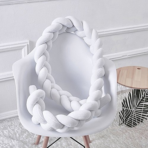 ベビーベッドガード サイドガード 抱き枕 ノットクッション 赤ちゃんベッドバンパー ソファークッション 結び目 ロング 部屋飾り 撮影小物 出産祝い プレゼント (2m, ホワイト)