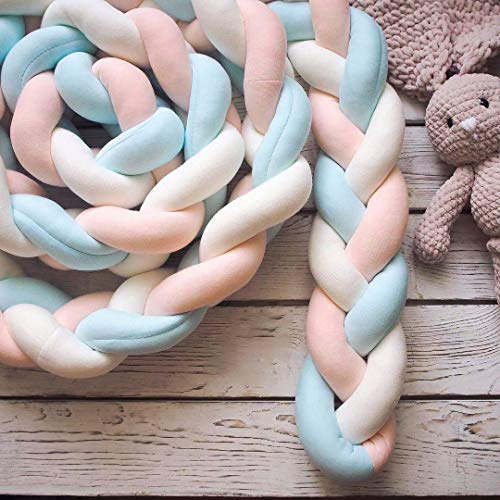 4M新作 ベビーベッドガード サイドガード ノットクッション 抱き枕 赤ちゃんベッドバンパー ロング 癒しアイテム 部屋飾り 写真記念 撮影小物 出産祝い (4m, ピンク/ブルー)