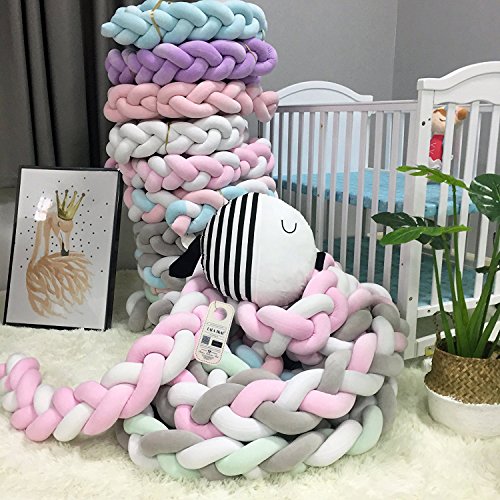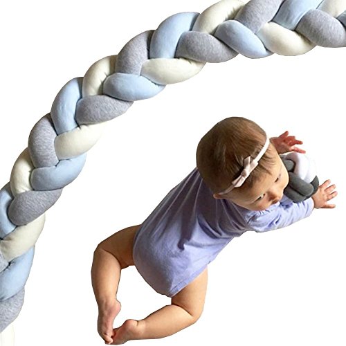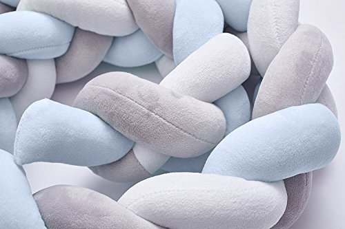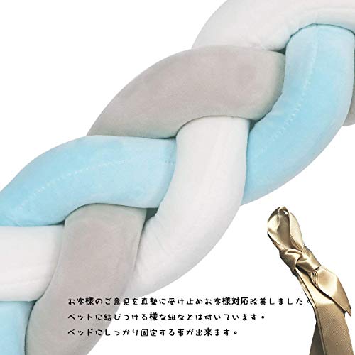 ベビーベッドガード サイドガード 抱き枕 ノットクッション 赤ちゃんベッドバンパー ソファークッション 結び目 ロング 部屋飾り 撮影小物 出産祝い プレゼント (3m, グレー/ブルー)