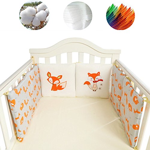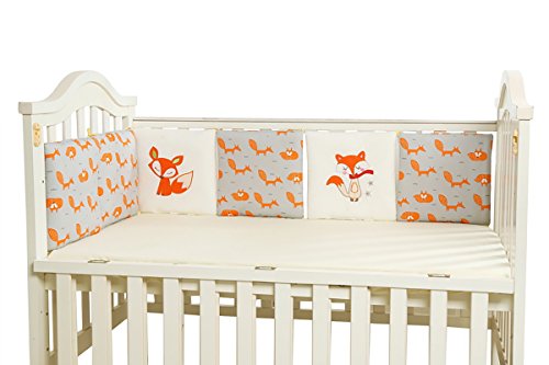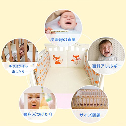 ベビーベッドガード サイドガード クッション 赤ちゃんベッドバンパー かわいい ひも付き 半周タイプ 組み合わせ 多機能 6点セット (オレンジ)