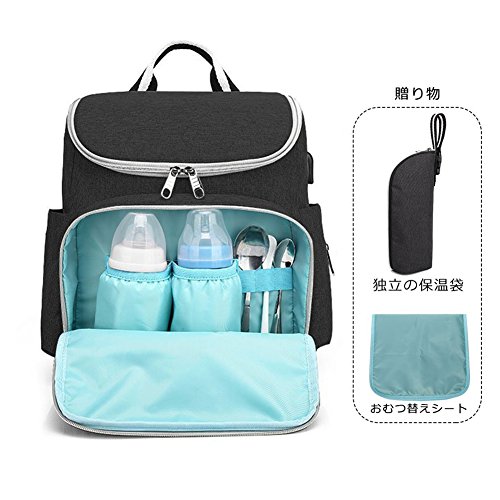 大容量 ママバッグ マザーズバッグリュック ベビー用品収納 ママ旅行用バッグ 多機能 USBポート搭載 防水 出産準備 男女兼用 (ブラック)