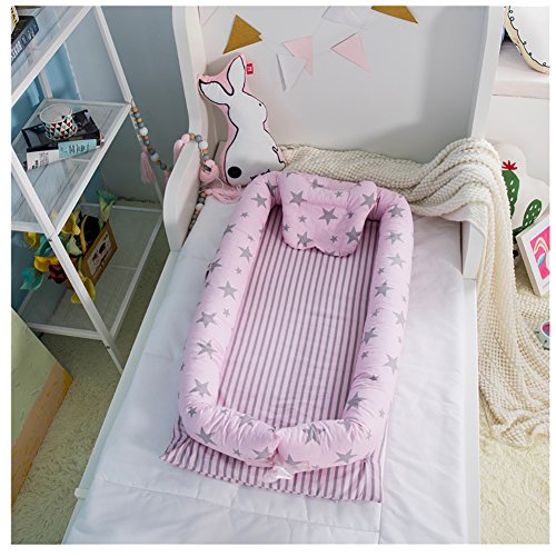 ベビー ベッドインベッド 赤ちゃんベッド 添い寝 おむつ換え ベッドガード 取り外し洗濯可 枕付き 出産祝い プレゼント (ピンク)