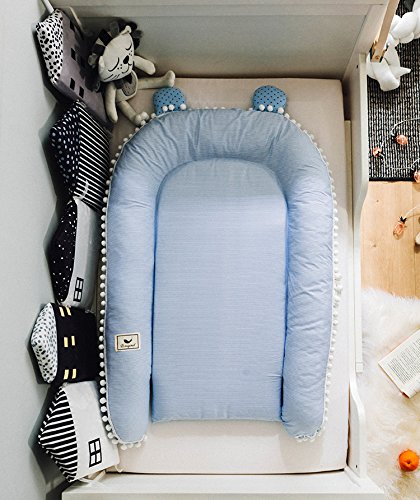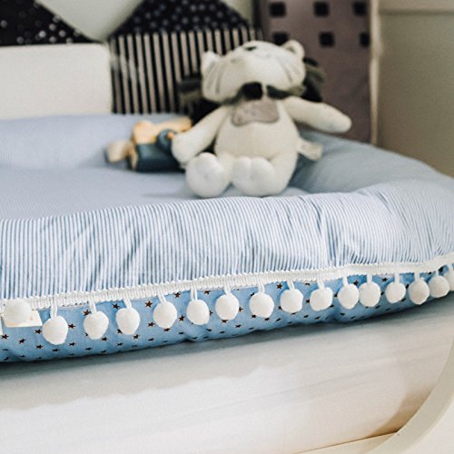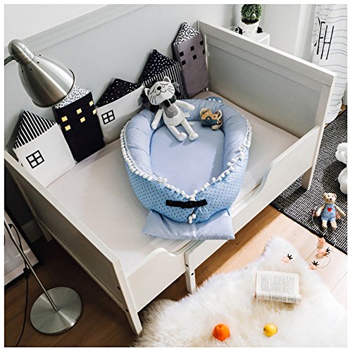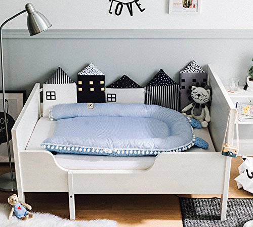 ベビー ベッドインベッド ポンポン付き 可愛い お洒落 赤ちゃんベッド 添い寝 おむつ換え ベッドガード 取り外し洗濯可 出産祝い プレゼント INS (95*70*16cm, ブルー)