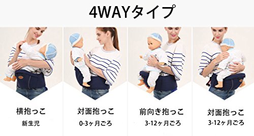 らくらく 赤ちゃん 抱っこひも ベビーキャリア 疲れにくい 腰ベルト メッシュ ウエストポーチ 4WAYタイプ 便利 新生児 出産祝い (ネイビー)