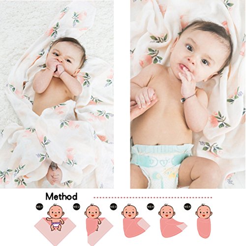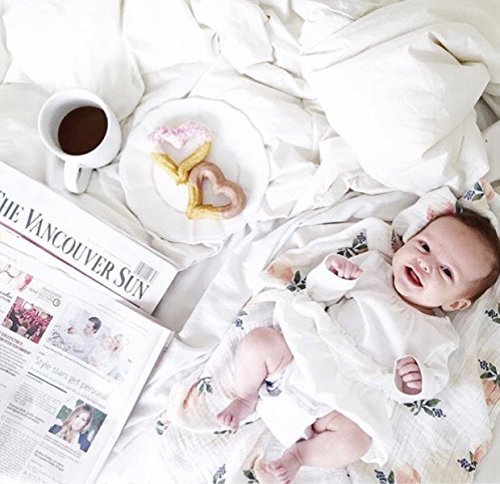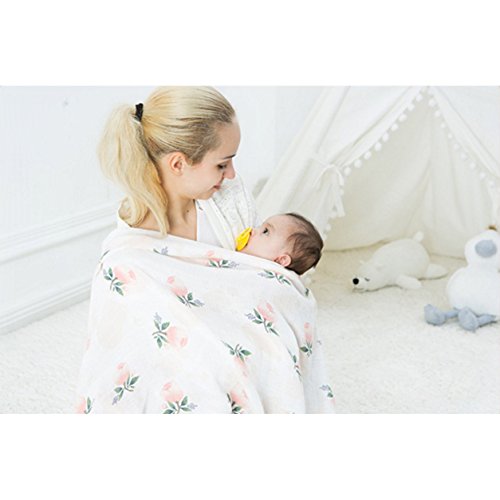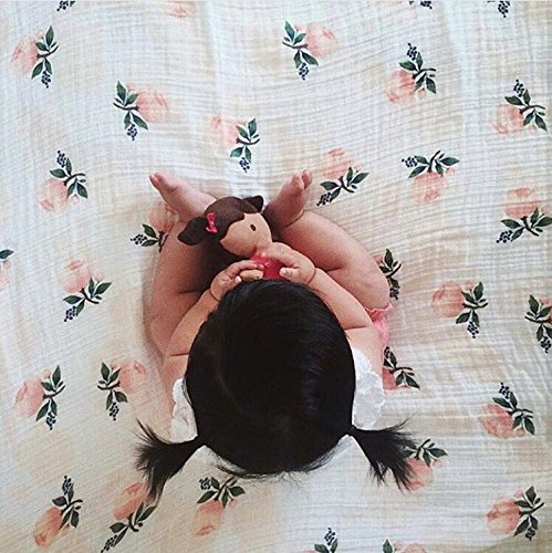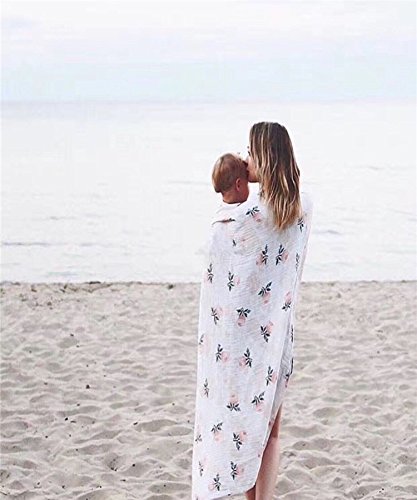 全6柄 ベビー おくるみ モスリンコットン 赤ちゃん ブランケット バスタオル 柔らかく ガーゼ 毛布 花柄 北欧 INS 人気 撮影小物 出産祝い プレゼント (ピンク花)