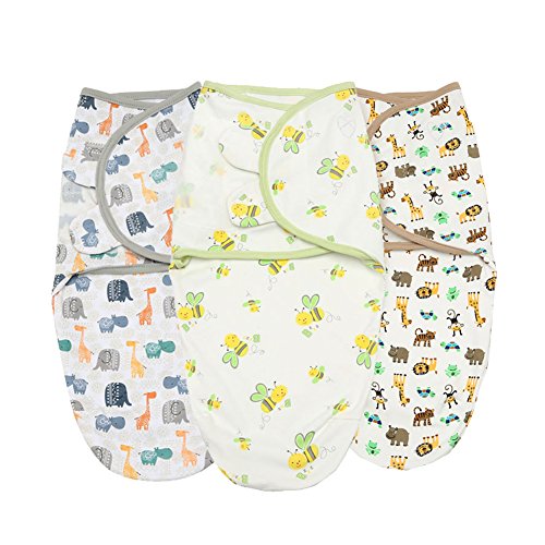 新生児 ベビー おくるみ コットン スワドル 包み込む安心 おしゃれ かわいい 人気 柄 3セット組 (動物柄)