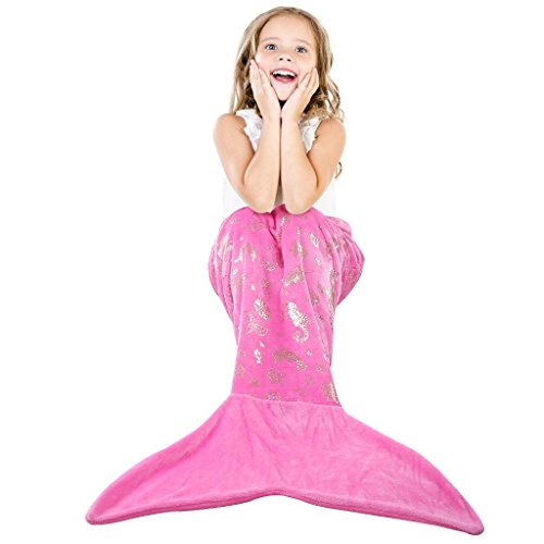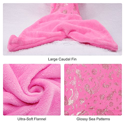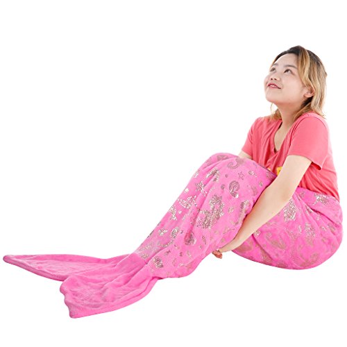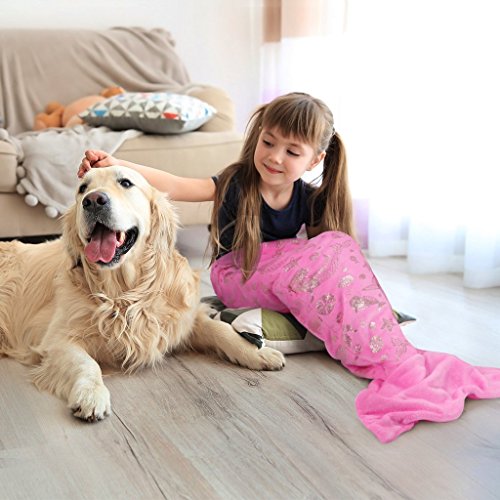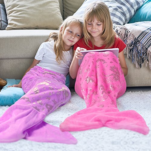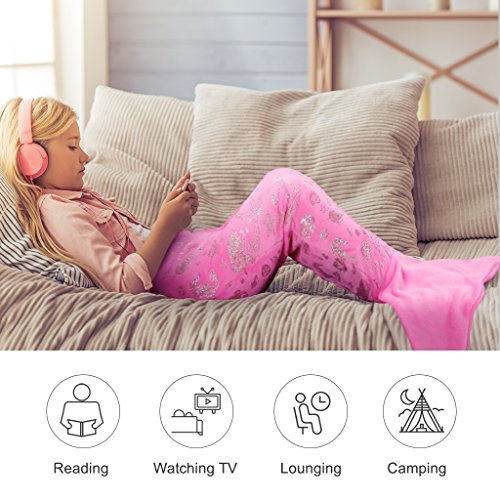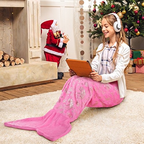 LangriaマーメイドテールBlanket GlitteringフランネルSuper Soft Cozy Warm Mermail Tail Blanket for Kid Girl ピンク LAJGJFGFGV