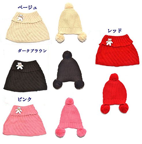 LAS BONITA ベビー キッズ 帽子 ニット帽子 キャップ マフラー 46 48 50 52 54 冬 女の子 (ピンク)