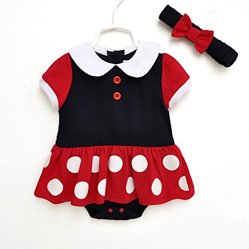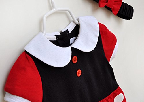 ワンピース風 ロンパース 60 70 80 おそろいのヘアバンド付き 半袖 女の子 入園式 結婚式 誕生日 (60)