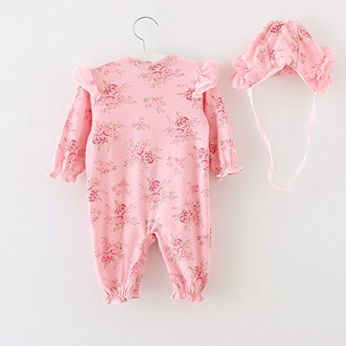 ツーウェイオール カバーオール おそろいの帽子付き 長袖 女の子 50 60 70 入園式 卒園式 結婚式 (60, ピンク)