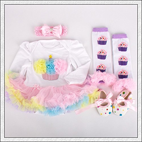 ベビー ワンピース風 ロンパース 長袖 0-3M 3-6M 6-12M 50 60 70 80 おそろいの ヘアバンド ブーティ 付き 女児 781 (3-6M, ケーキ・虹色)
