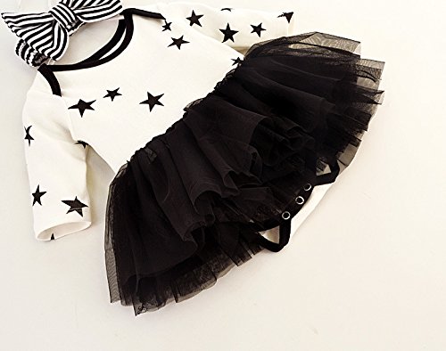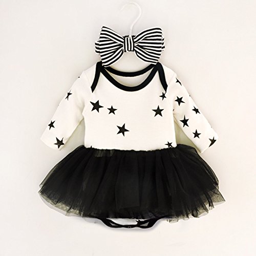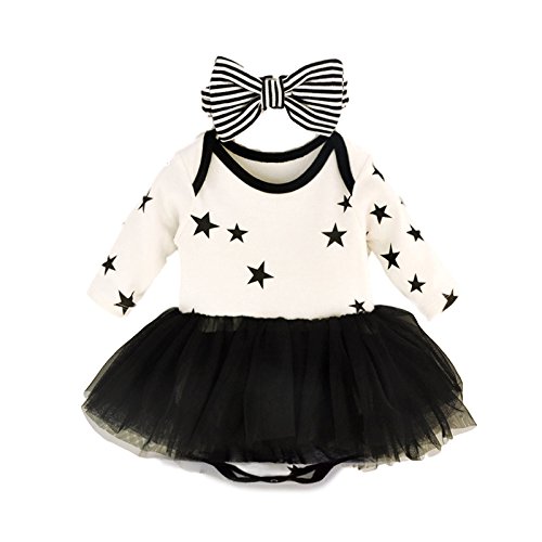 ワンピース風 ロンパース 3M 6M 9M 60 70 おそろいのヘアバンド付き 長袖 女の子 入園式 卒園式 結婚式 (6M(6ヶ月), ブラック)