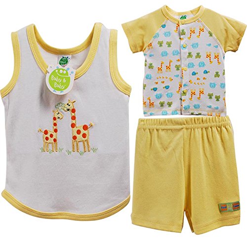 Baby&Baby 3点セット ベビー 半袖 9M 12M 18M 24M 70 80 90 男の子 セットアップ パンツ シャツ タンクトップ イエロー KT051 (12-18M(12-18ヶ月))