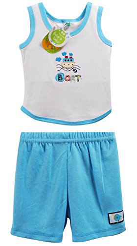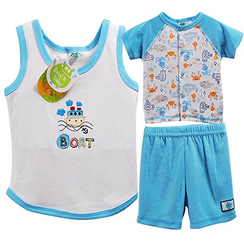 Baby&Baby 3点セット ベビー 半袖 9M 12M 18M 24M 70 80 90 男の子 セットアップ パンツ シャツ タンクトップ ブルー KT052 (9-12M(9-12ヶ月))