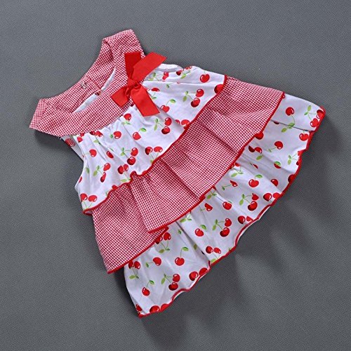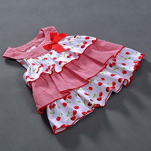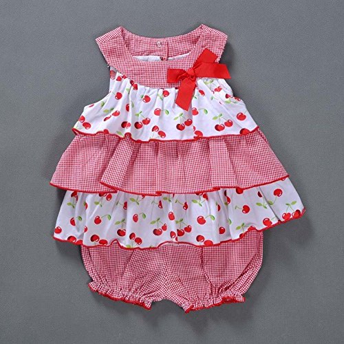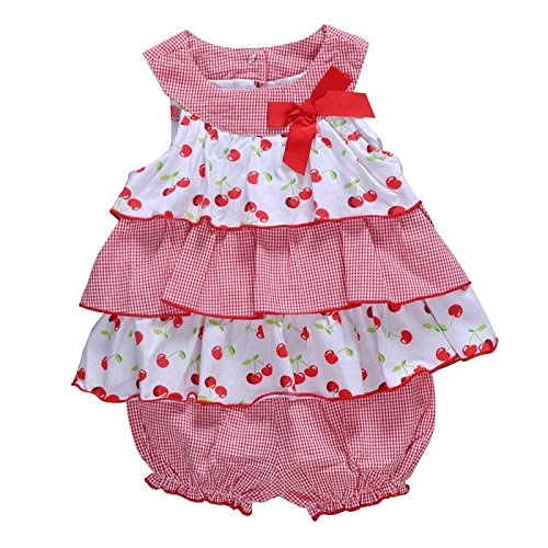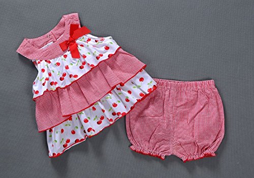 Vitamins Kids ブルマ付 ワンピース 上下セット チェリー柄 サクランボ 70 80 90 9M 12M 18M 24M 半袖 女の子 入園式 結婚式 誕生日 (18M)