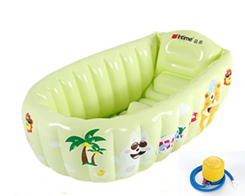 LAZA ベビーバス ふかふか 泳べるお風呂 ブルー ピンク 緑 BB型ポンプ付け 対象年齢:新生児~4歳まで (緑)
