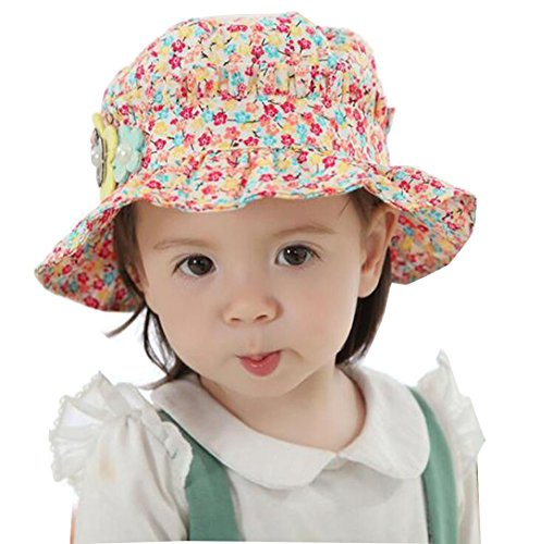 LAZA ベビー ハット 帽子 紫外線 uvカット つば付き 女の子用カラー:ピンク レッド ブルー 黄色 (ピンク)