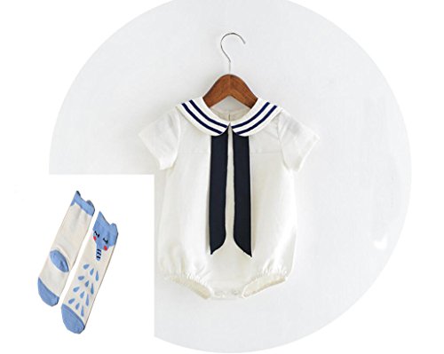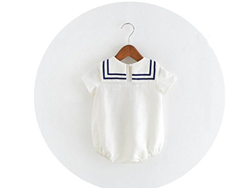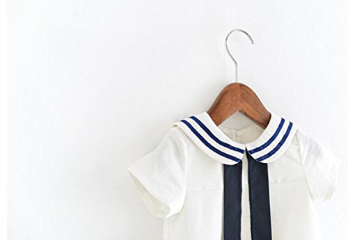 LAZA ベビー服 ベビー 赤ちゃん 男児共用 ロンパース 夏 半袖 セーラー マリン カバーオール 水兵さん ベビー キッズ (S)