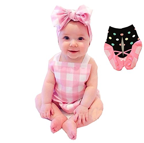 LAZA ベビー服 ベビー 赤ちゃん 男女共用 女の子 オールインワン ロンパース 靴下二点セット 衣装 (80, ピンク縞)