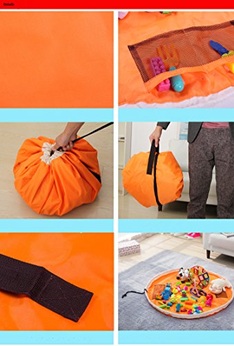 - HIGHEST DURABILITY PLAYMAT TOY ORGANIZER AVAILABLE -- Foldable, eco-friendly and nontoxic--Double layer EXTRA STRONG washable Fabric will last a lifetime--Made with Non Flammable CPAI-84 Standard Material--Pocket on the outside insures that the excess nylon cord stays in so kids aren't tripping on it.