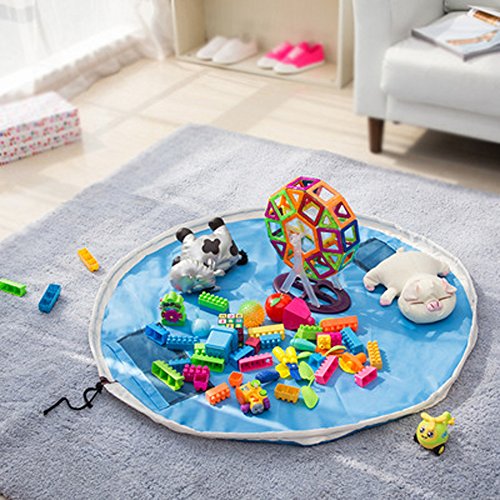 Portable Oxford Cloth LEGO Storage Bag Kids Play-Mat Toy Storage Bag Foldable 60 inch Playmat (blue)