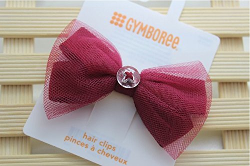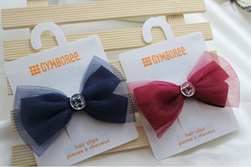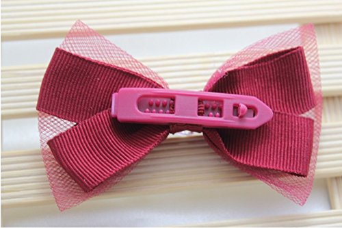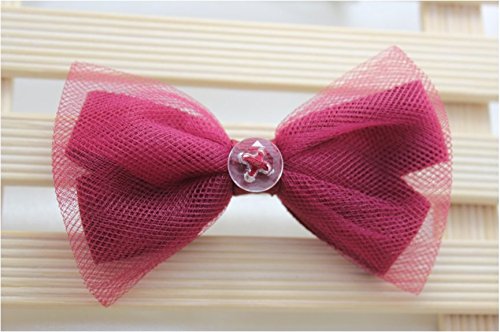 ボタン飾りの薄絹リボン ヘアピン ヘアクリップ&子供 (赤)