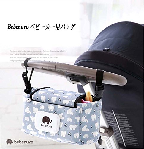 ベビーカーバッグ オーガナイザー 収納バッグ ママ助け フラップ付きマザーズバッグ多機能小物入れ ドリンクホルダー ティッシュポーチ付き (しろくま)
