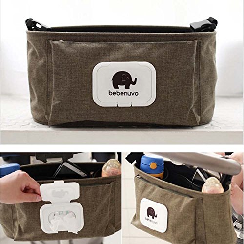 ベビーカーバッグ オーガナイザー 収納バッグ ママ助け マザーズバッグ多機能小物入れ ドリンクホルダー ティッシュポーチ付き (茶色)