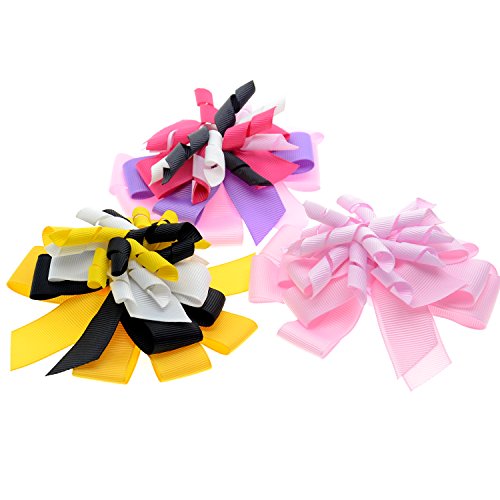 女性の赤ちゃんと子供のためのマルチ積み重ねのアリゲータークリップとカーリングリボンのヘアアクセサリー