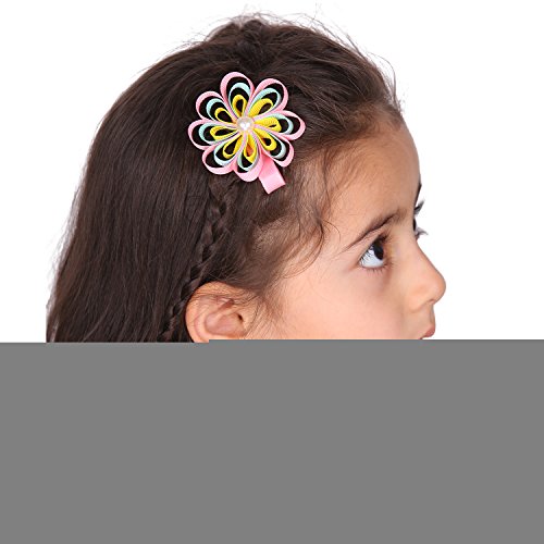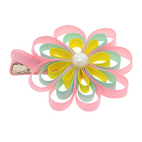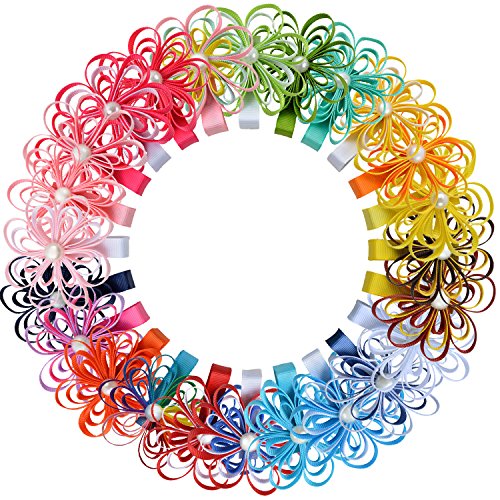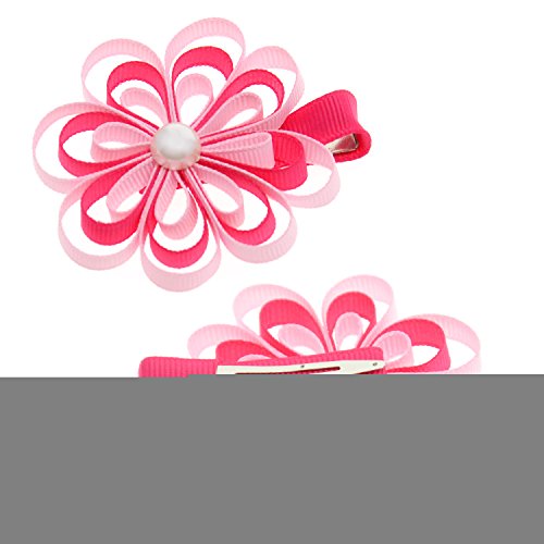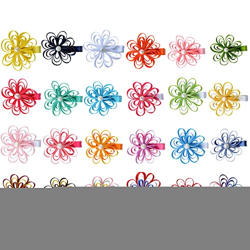 女児 6.4cm (2.5インチ) フラワー グログラン リボン ヘア ボゥ セット ビーズ付 24 個入り セット