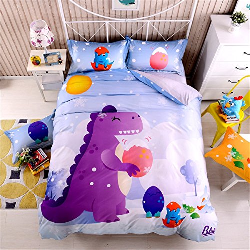 LEDMLSH 3ピース漫画恐竜キルトカバーベッドカバーセット抱き枕カバーベッド紫(シングル)