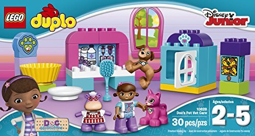 Disney Junior's Doc McStuffins fans will love lifting the cat onto the scales to check its weight before examining it on the table. Then they can feed Findo before opening the door of the kennel to let him settle down for the night. Show young children how to care for animals in this fun set with simple builds. Includes a LEGO DUPLO figure: Doc McStuffins, plus Hallie, Findo the dog and a cat.