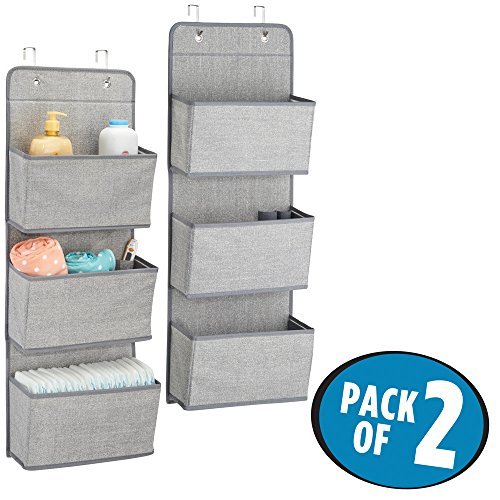 mDesign Over Door Fabric Baby Nursery Closet Organizer for Stuffed Animals Diapers Wipes Towels - Pack of 2 3 Pockets Each Gray [並行輸入品]