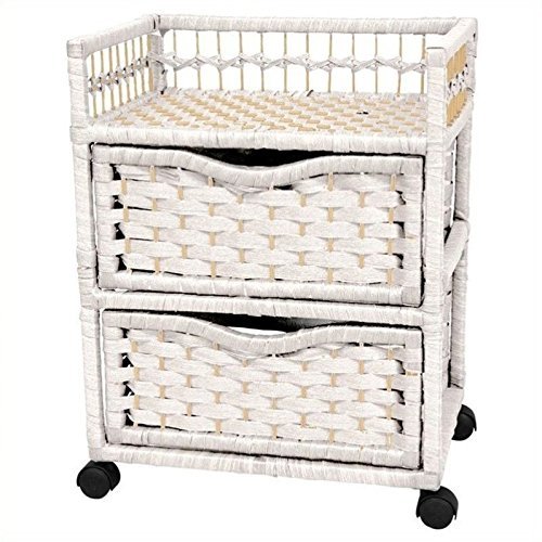 Oriental Furniture 23 Natural Fiber Chest of Drawers on Wheels - White [並行輸入品]
