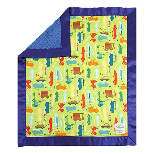 My Blankee Beep Beep Lime Green Cotton Blanket with Minky Dot Electric Blue [並行輸入品]