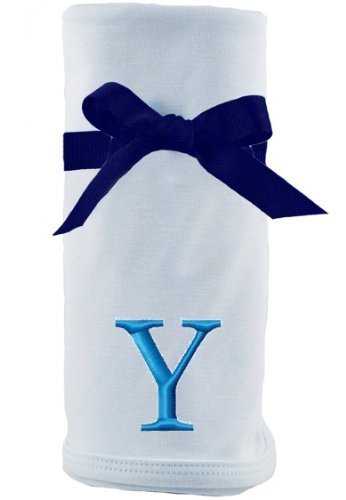 Princess Linens Embroidered Blue Initial Cotton Knit Blanket Y [並行輸入品]